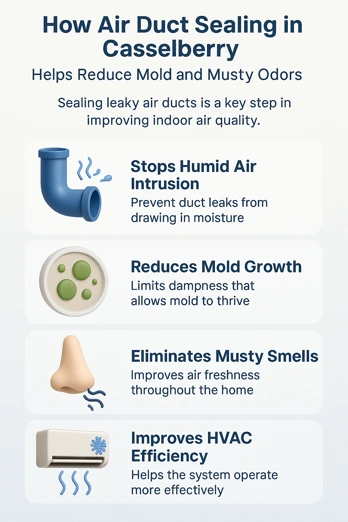 Leaky ducts are a common hidden cause of mold and musty odors in Casselberry homes.